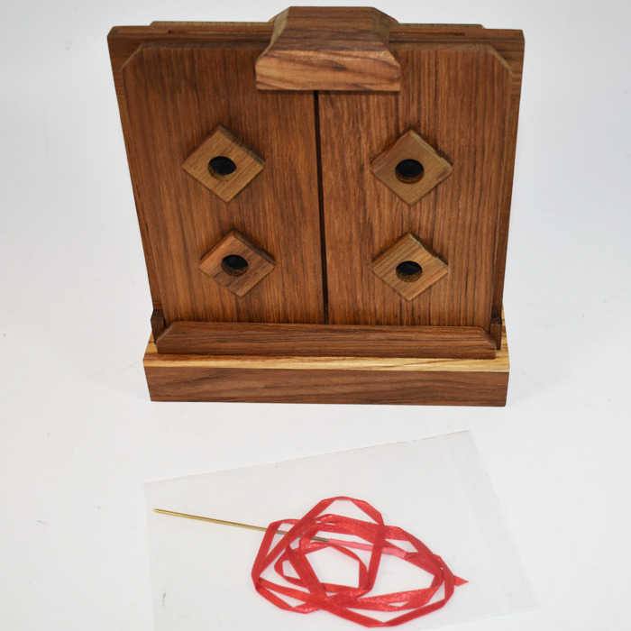 A beautiful wooden frame with four window panes of glass is displayed. Each glass pane is now tapped in turn with a brass rod to show that it’s solid. Now, two panels with star traps are placed on the frame, one in front of two of the panes and one behind. The brass rod with a length of ribbon attached is then pushed through the star traps, apparently penetrating the glass! The rod and the panels are then removed, showing that the glass is unharmed and still perfectly solid. The panels are now placed over the other two glass panes and the effect is immediately repeated again! Next, two panels are placed in front and two on the back of the frame, covering all four of the glass panes and the brass rod is then pushed through each one, leaving the ribbon running completely through the star traps! The frame can then be shown on both sides and there is no explanation as to how the brass rod could have gone through all four of the glass panes! It looks truly impossible.