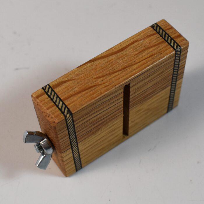 Babcock Block Bolt and Coin Penetration: fancy wood inlay version: silver dollar size!
