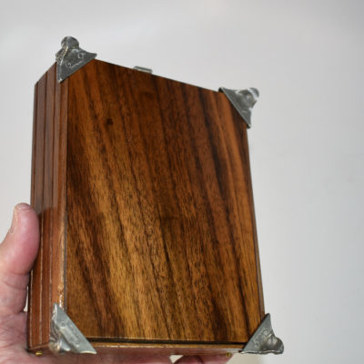 His first version is in my opinion the best design and both the box and drawer can be taken out and show to be innocent of trickery. My version has an added improvement and can even be handled by the spectator. There are no sliding pins or gimmicked knobs.