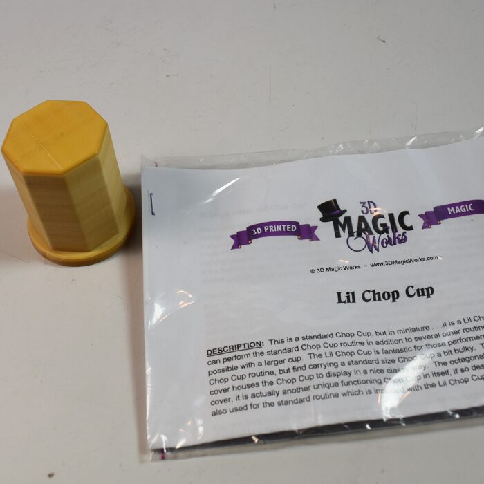 This was produces in 2017 by the short lived 3-D Magic Company and Kent Bergmann. It is a very clever chop cup with monkey fist balls and the case cover is also gimmicked for chop use making for some interesting routines. Brand new opened to photograph. The cup is 1 7/8 inch tall.