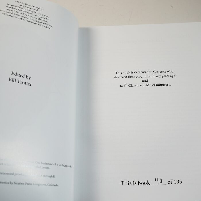 Now pretty much impossible to find. This one is new and will be shipped in the original packaging. Signed by Clarence Miller and the author. Includes a tipped in Miller business card as issued.