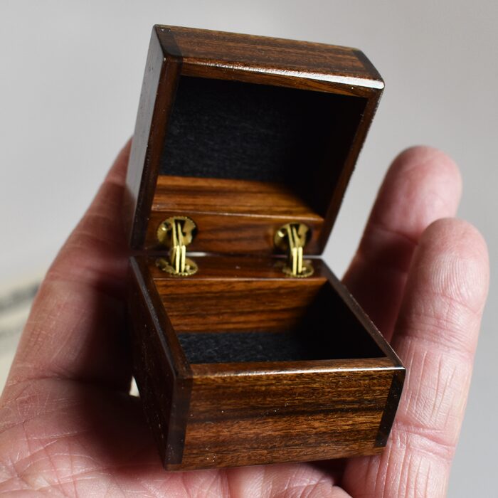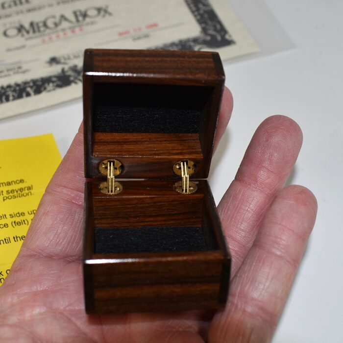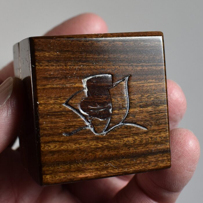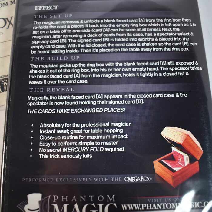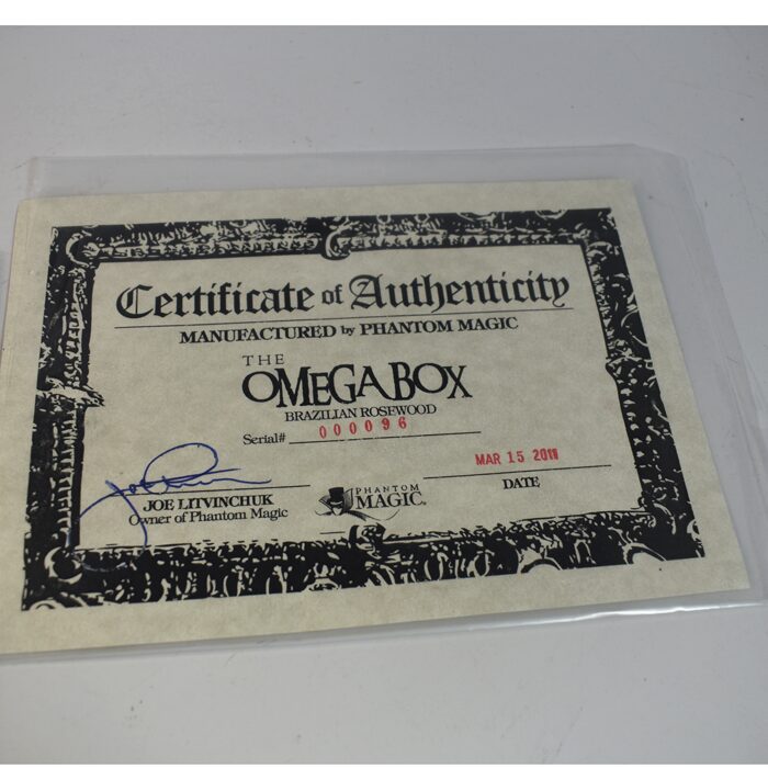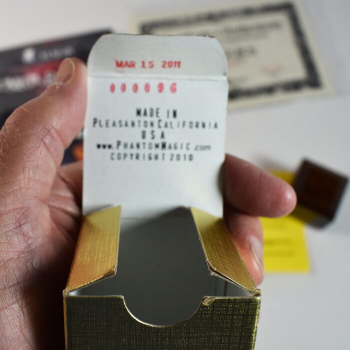 These boxes are hand made by Joe LItvinchcuk of Phantom Magic where he created a fine line of exclusive magic products for discerning magic collectors and professional magicians. The box is smaller than the Mystery Box and obviously a different method. This one is the more rare and more expensive box of the two versions created by Joe made from Brazilian Rosewood. Circa 2010. It is a remarkable effect and an extremely well made box. Hallmarked with certificate of authenticity. Complete and never used. Made in 2010. Scarce.
