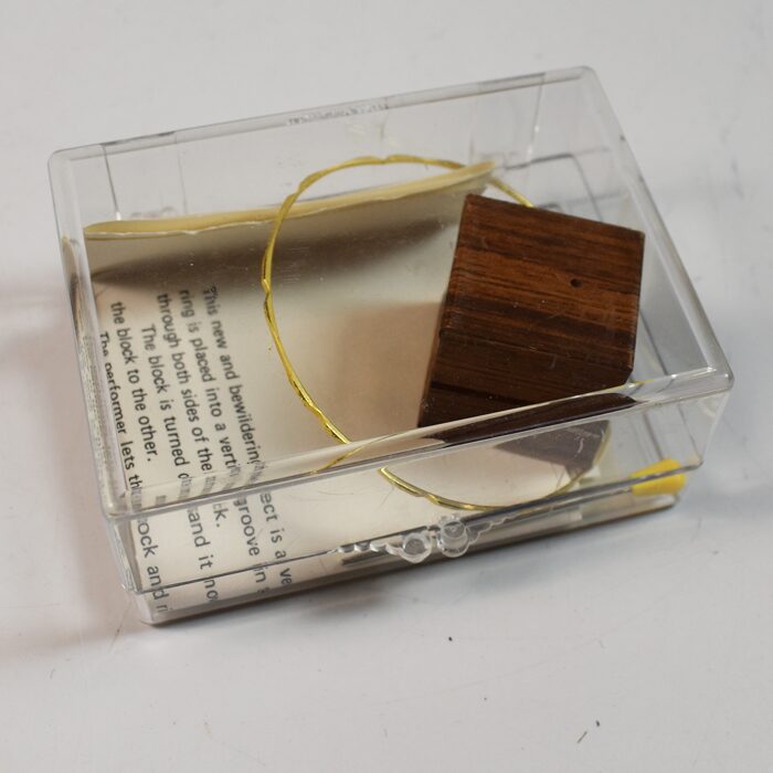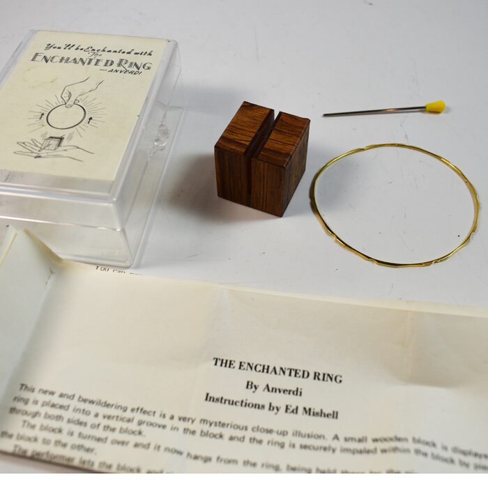 The original Anverdi Enchanted ring Manufactured by Tony Anverdi. The ring is linked through the block by a pin holding it in place. Instantly it penetrated the pin and is removed from the block. All can be examined afterwards. Very nice internal mechanics. Th is the original circa 1970.