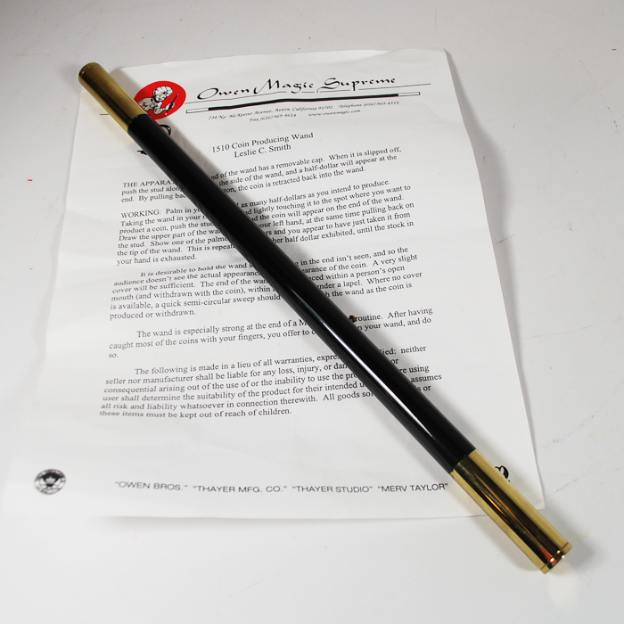 Owen Coin Wand by Les Smith. This is a very fine coin wand as you would expect. Kennedy half dollar. Removable tip. Hallmarked. One of the best coin wands available. Smooth as silk. Never used.