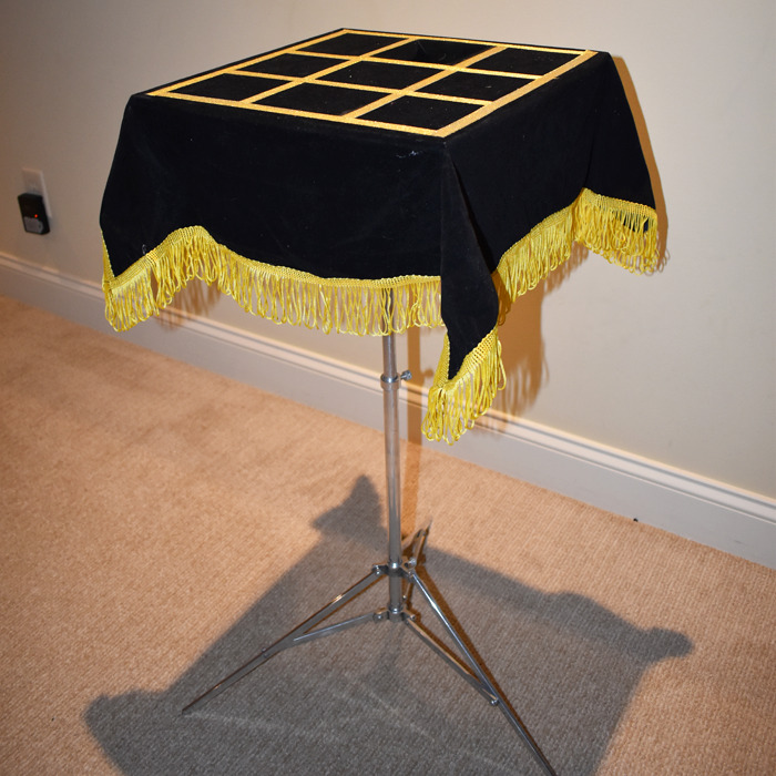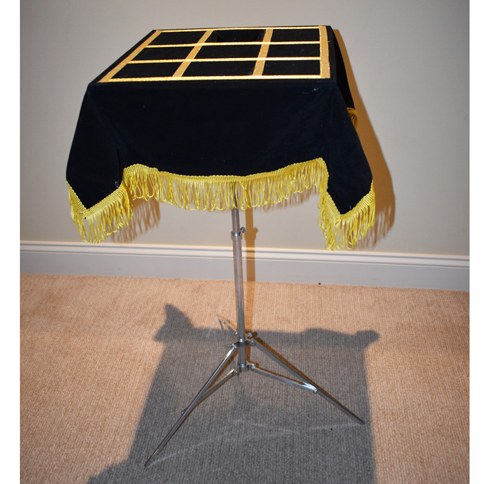 This is a very nice table. Not a music stand made into a table but a nicely done magic table. It is made of sturdy but very light aluminum. Like new.
