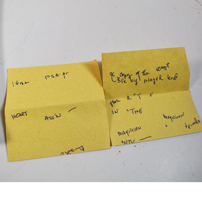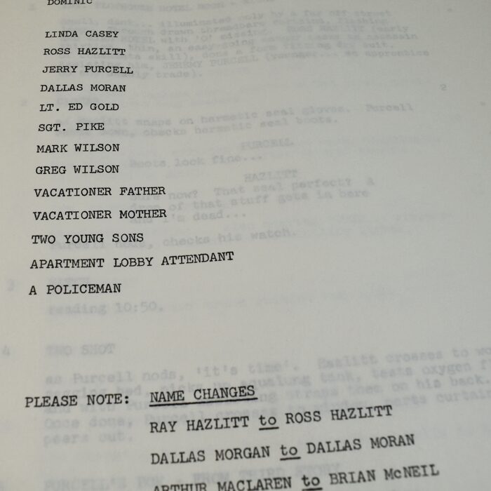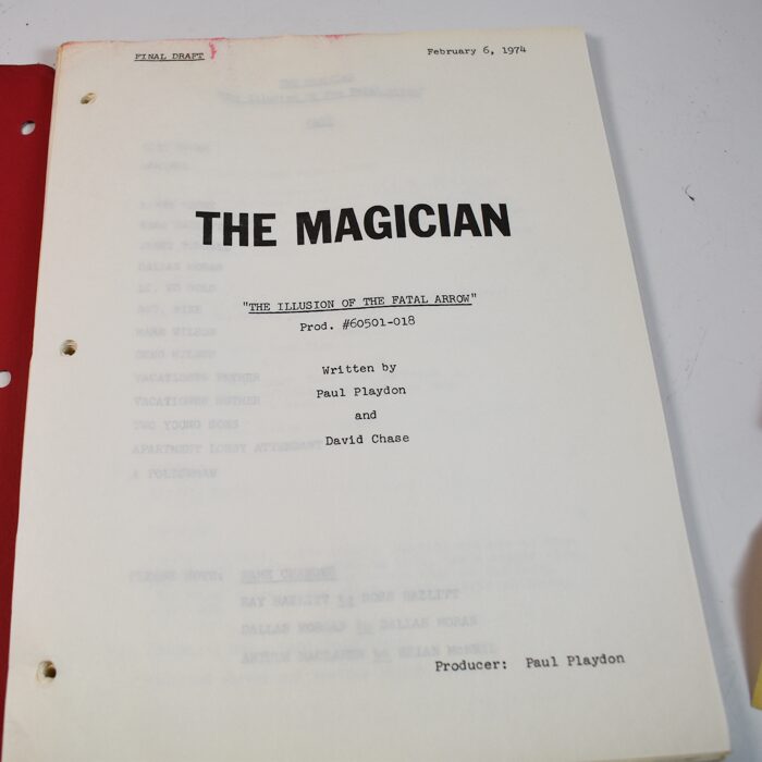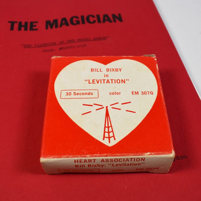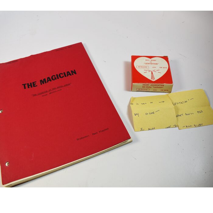 This is a very special script because it also stars Mark and Greg Wilson. The date is Feb. 6, 1974. It is the final script. We are also including a Heart Association PSA 16 mm film staring BIxby and the Levitation. This is a wonderful find directly from the Jim Hoy Estate. 57 pages complete and in excellent condition. Includes a note found with the film.