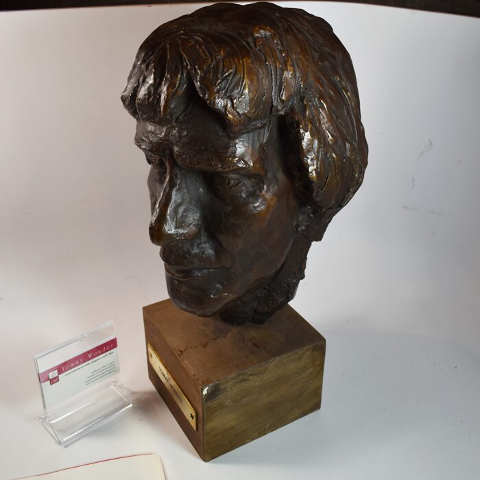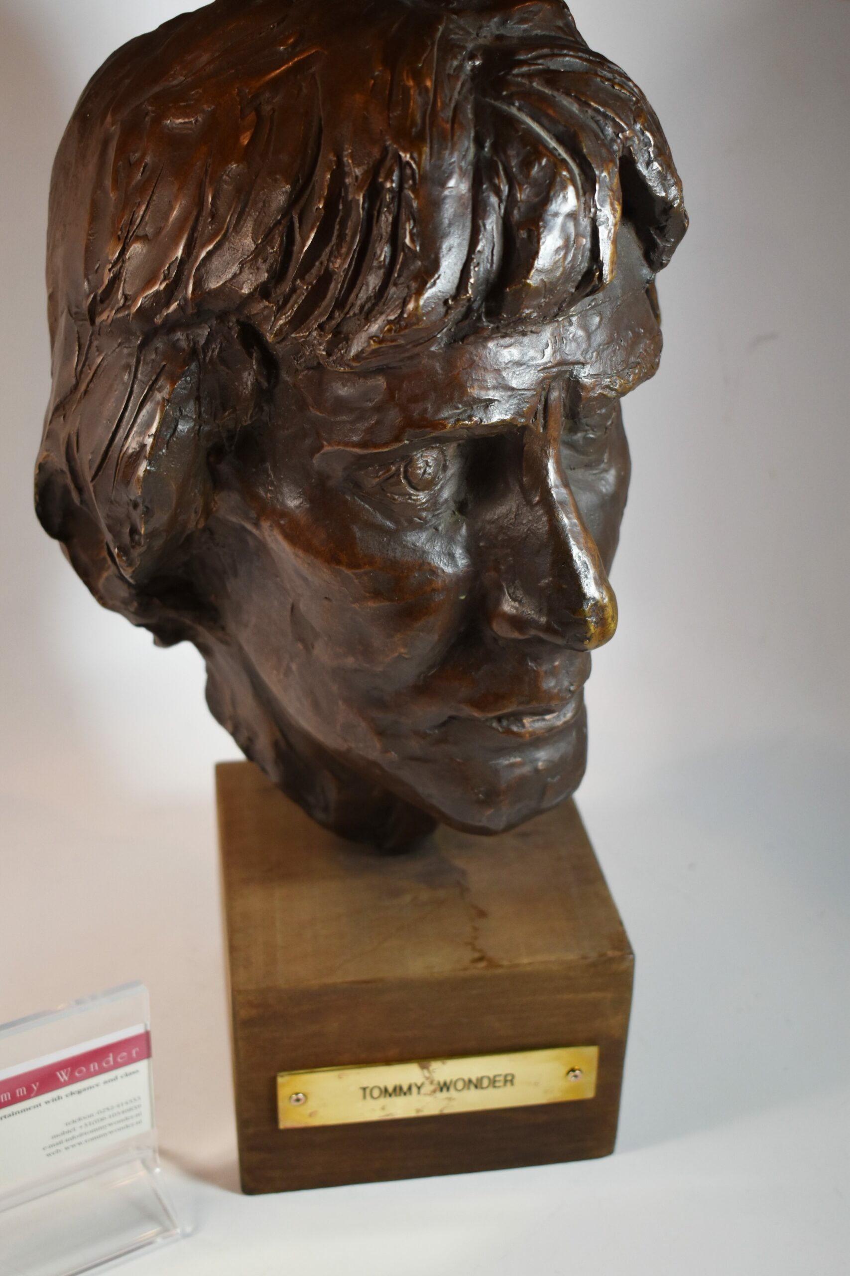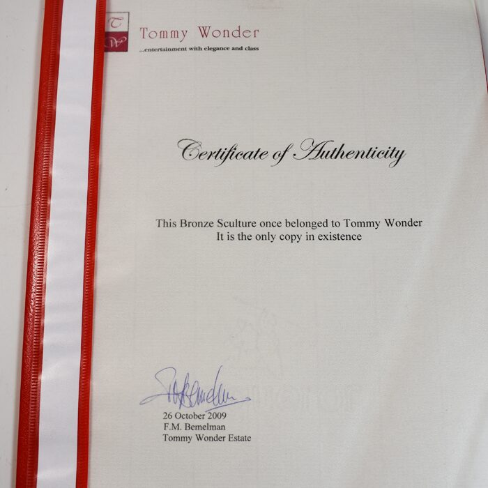 The sculpture is larger than life size at 17 inches tall and weighs 27 lbs. It is solid bronze. It comes with a certificate of authenticity from the Tommy Wonder estate and includes one of Tommy’s business cards.